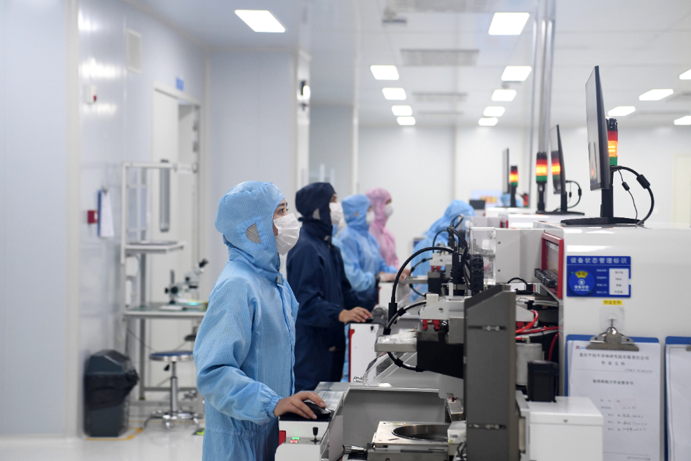 2024年5月10日,技术人员在重庆平创半导体研究院生产线上忙碌。新华社发(曾清龙摄)